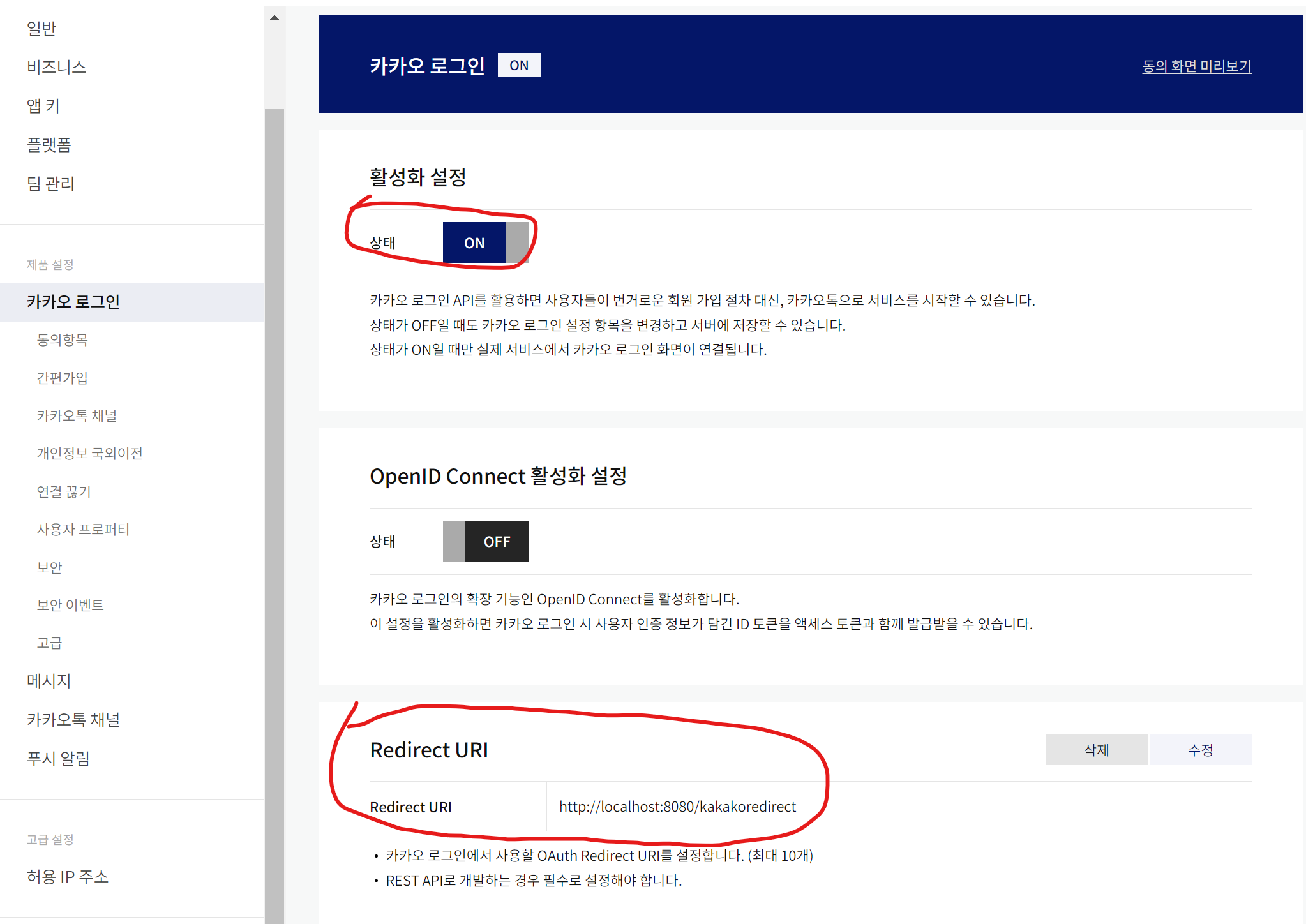 "redirect_uri" : "http://localhost:8080/kakakoredirect",